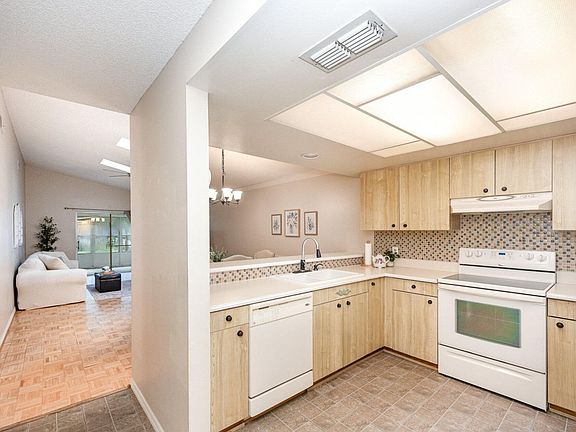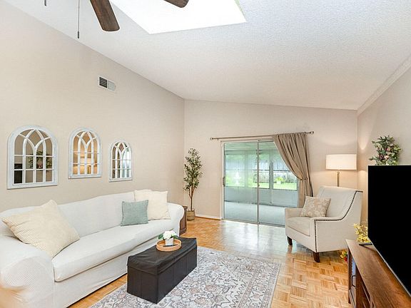 As you enter, you'll find the kitchen to your right, featuring generous cabinet and counter space plus a closet pantry. The kitchen overlooks the spacious dining and family room combo, making it ideal for both entertaining and everyday living. Sliding glass doors lead from the living room to a covered lanai/Florida Room and fully fenced backyard perfect for relaxing, pets, or play.