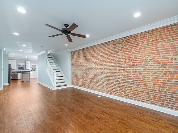 Modern kitchenRecessed lightingGorgeous hardwood flooringStainless steel appliancesCarpeted bedroomsQuartz countersGenerous dining area