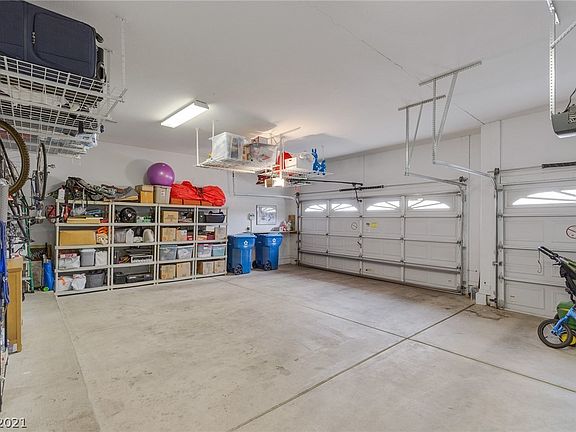 Oversized 3 car garage with overhead storage.