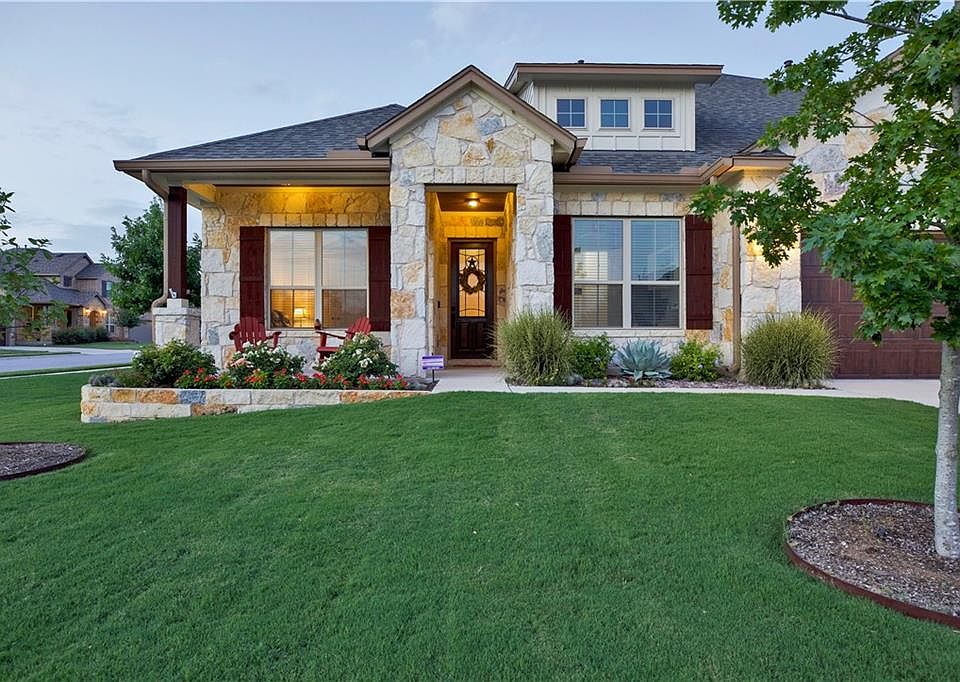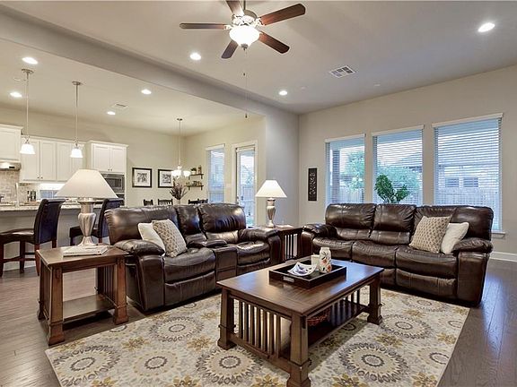 Features: wood floors, office w/built-ins, guest suite w/full bath, surround sound wiring. Convection oven, pot drawers, under-counter lights. Master dual closets, WIC. Upstairs gamerm w/storage closet & half bath can be 5th bedrm. Pool-sized bkyd; huge cvrd patio w/ Kool-Cote, gas plumbing & Weber grill, speakers, "dry creek" landscaping, water softener, RING camera system. 2 blks from the park/playgrd/trail to lake. Community amenities: catch & release fishing, 2 pools, splash pad, & 4 parks/playgrds.
