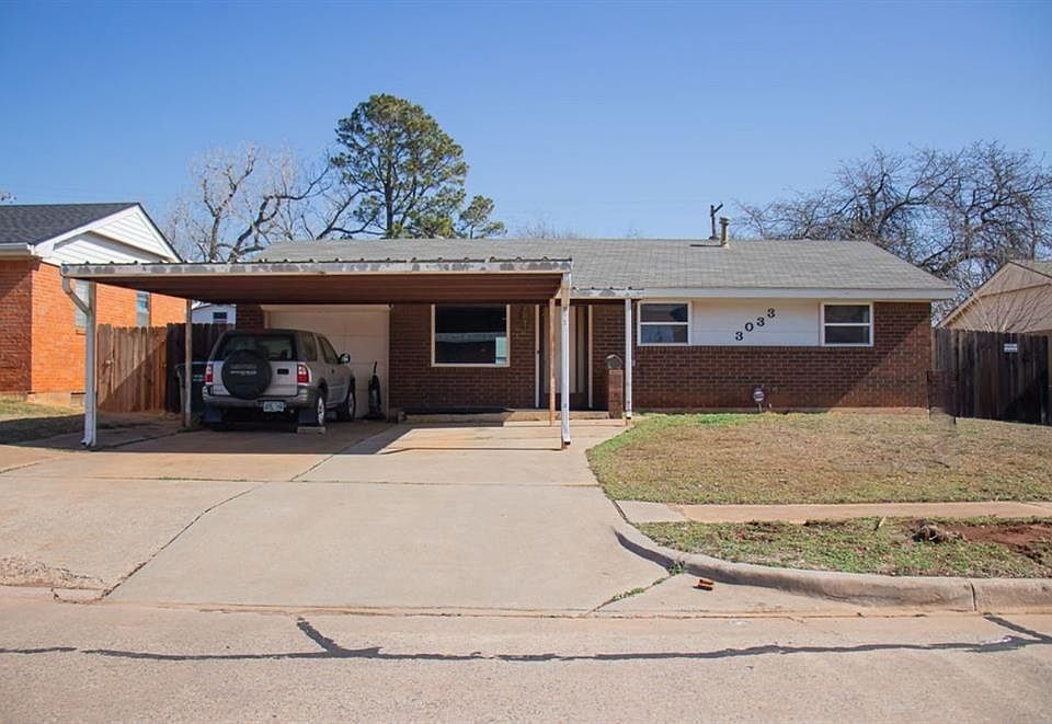 This cozy home has potential to be a great small home or an investment property. Located easily off the highway down Bryant. Backyard boasts a LARGE covered patio, massive storage shed, as well as a large above ground storm shelter. The garage holds a single car while the large driveway and carport can easily house 2- 4 additional vehicles.