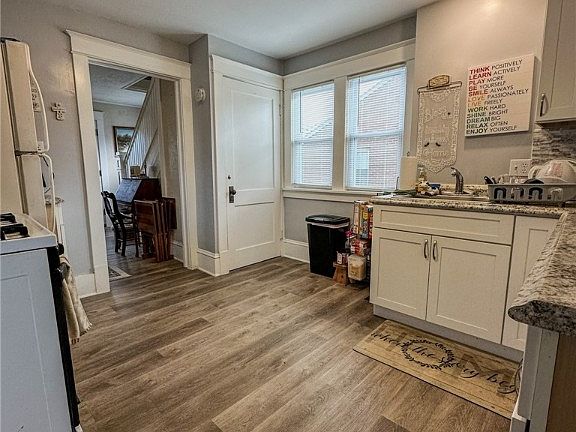 Old-style two-story home in Olean, offering warmth, character, and modern updates. With three comfortable bedrooms, one full bath, and approximately 1,100 square feet of living space, this home provides a thoughtful balance of charm and functionality. The bright kitchen features ample cabinetry, natural light, and easy access to the dining room, making everyday living and entertaining a breeze. Newer flooring throughout the main level complements the open flow between the living and dining areas, both filled with natural light.