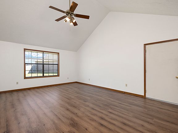 Two bedroom, 2 full bathroom, 2 car garage duplex, LVP flooring throughout. Large living room with vaulted ceilings, built-in shelves and open to the kitchen/dining room. Master bedroom has a walk-in closet, attached bathroom, and access to the fenced back yard. 2nd bedroom also has a walk-in closet. Good size laundry room with shelving for storage. Tenant is responsible for utilities and lawn mowing. NO smoking, no animals.