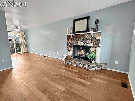 Highly Desirable End Unit Townhome in Colorado Springs | Updated, Private, and Perfectly Located Nestled in a prime southside location, this beautifully updated 2-bedroom, 2-bath end-unit townhome blends modern style with unmatched convenience. Designed for contemporary living, it boasts an open floor plan, a cozy wood-burning fireplace, and a bright kitchen. Upstairs, two spacious bedrooms feature upgraded custom dimmable recessed lighting, creating a warm and inviting ambiance. They share a full bath and a laundry room with a washer and dryer for added comfort and practicality. Step outside to your private, fenced patio and small courtyard—perfect for indoor/outdoor living, BBQs, or entertaining. The courtyard also includes additional non-climate-controlled storage, ideal for keeping seasonal items organized. With covered parking, low-maintenance amenities, and easy access to I-25, Fort Carson, Colorado Springs Airport, and Peterson AFB, this home is ideal for professionals, first-time buyers, or those looking to downsize. Located in a friendly community close to schools, shopping, and outdoor recreation, this move-in-ready gem offers the ultimate blend of style and ease. Don't miss out—schedule your showing today!