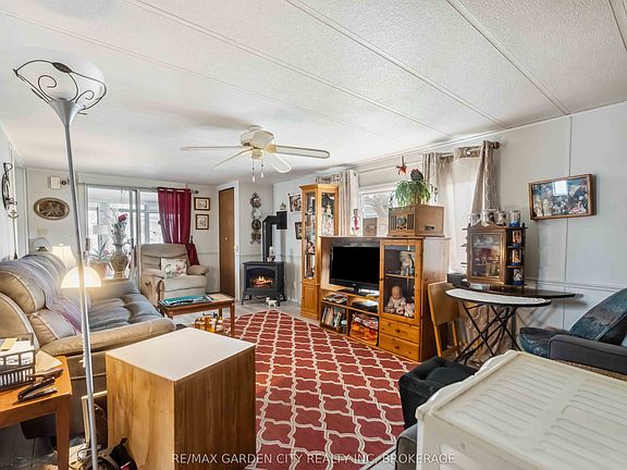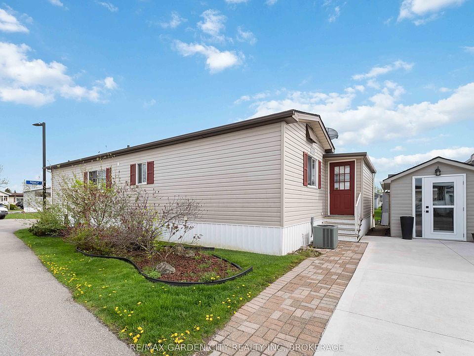 Corner unit bungalow in Black Creek adult living community. One bdrm, one bath and sun room. Open concept kitchen/dining area. Spacious living room. Bedroom has built-in closets.3 piece bath with sky light. Laundry area with washer & dryer. Cozy sun room with floor to ceiling glass to enjoy the morning sun. Double car interlock driveway and garden shed with hydro. Experience a unique lifestyle with community living that offers a fantastic club house with indoor and outdoor pools, sauna, shuffle board, tennis courts and weekly activities: Tai Chi, water aerobic, dancing classes, bingo, etc. Land lease and property tax paid monthly ($825 land lease /$112.56 property tax).