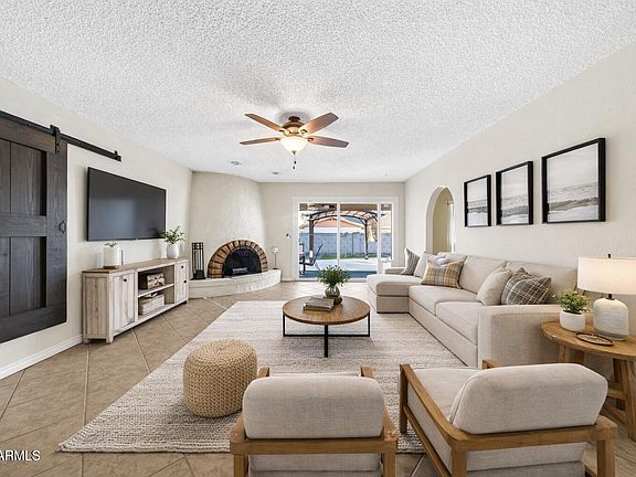 The spacious open floor plan is filled with natural light, creating an inviting space for everyday living and entertaining. The primary suite features a private en-suite bath and walk-in closet, along with direct access to the backyard and pool. Step outside to your own desert oasis with a covered patio, pergola, and sparkling Pebble Tech pool- perfect for Arizona living year-round.