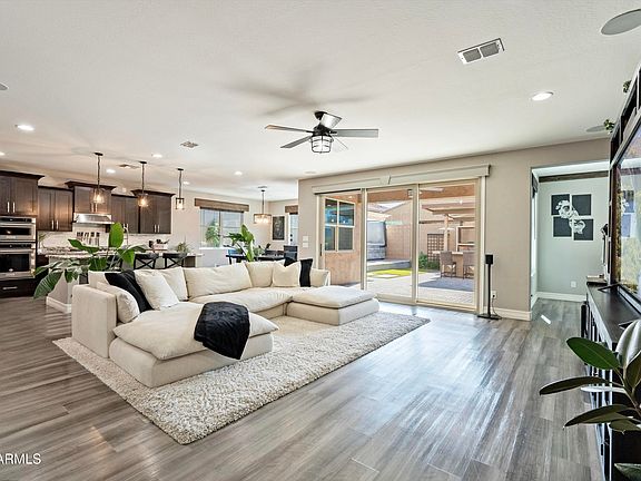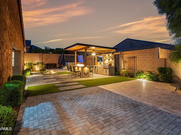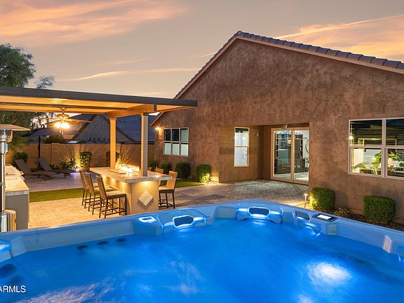 Welcome to a turnkey dream home showcasing over $200k in builder/seller upgrades and an impressive backyard! This flexible split floor plan features 3 bedrooms, 2.5 baths, an additional flex space/formal, pocket office, and open concept living styled with modern fixtures, luxury flooring, custom wood trim accents, surround sound, and more. The kitchen is equipped with staggered cherry cabinetry, a 30'' stainless gas cooktop, built-in ovens, RO system, walk-in pantry, and large island. Head outside through your expansive multi-slide doors to the covered patio and yard enhanced with Kokomo outdoor kitchen, built-in gas fireplace, Bullfrog spa, all surround by thoughtfully designed turf & paver landscaping and built in lighting... Additional highlights include a 2024 water softener and a three-car tandem garage with epoxy floors. All of this is set within a gated community offering parks, courts, playgrounds, and just 10 minutes from TSMC.