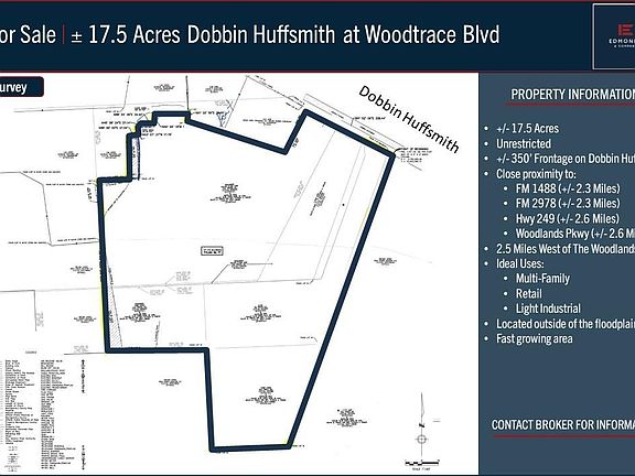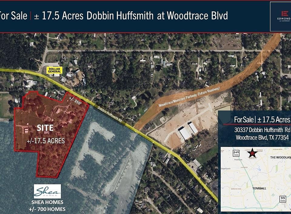 BIG PRICE UPDATE on this super rare Woodlands/Magnolia area development site. Location & 17+Ac Size make this tract an incredible investment and/or development opportunity at a great price. Huge potential for many uses. Situated at the epicenter of a quickly transforming area, near the Dobbin-Huffsmith and WoodTrace Blvd intersection (the primary connector road from Woodlands/FM 2978 to State Hwy 249/Tomball - currently under construction). Numerous new residential & commercial developments in the area surround this unrestricted tract including Shea Homes 700+ home Woodhavyn community. Known as the "Prince Place", the property has been in the same family for a generation and offers a number of excellent development and investment options.