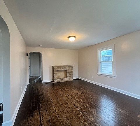 Attached garageOpen floor planOpen kitchenOriginal hardwood floorsDecorative fireplace