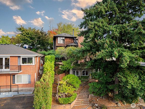Tucked away on an estate-like setting, this Northwest Contemporary home offers rare privacy with sweeping territorial and beautiful sound and mountain views. The architecture embraces its natural surroundings, blending light, texture, and thoughtful design throughout. Expansive windows frame the scenery, while open living spaces and a sleek kitchen make every moment feel connected to the outdoors. Upstairs, the primary suite and sun deck invite calm and reflection. Downstairs, an Irish pub and rec room create the perfect gathering spot. A hidden retreat just moments from Magnolia’s village, parks, and in city living while feeling a world away. Garage plus off street parking. Also has a protected view on title.