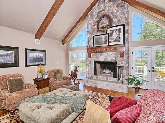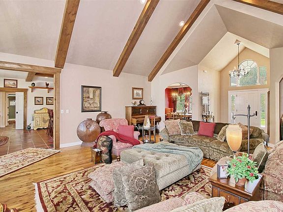 WOW! A very rare find. 4600sf of custom, detailed, thoughtfully planned space. Great room w/soaring ceilings, exposed beams, huge stone fireplace, Austrian pine floors, walls of windows. Main bath with lights from Italy, slate tile. Kitchen has cherry cabinets, countertop custom tile from Mexico, island is wood and dark granite, Pro series Kitchen Aid appliances, Dacor gas range, slate tile flooring, an eat-in space w/built-in bench seat. Master suite sits off the back, double doors, fireplace separates a cozy reading area to the bedroom, bathroom w/slate tile, custom cabinetry around double sinks. Over 800sf bonus room upstairs, the real treat is downstairs, a game room w/pool, darts, more storage, a dream wine cellar w/ stone walls, half bath. 4 Zoned heating and A/C, 3 car heated garage, HUGE detached garage/shop w/possible living space above. Completely landscaped 2.3acres, 3D tour!