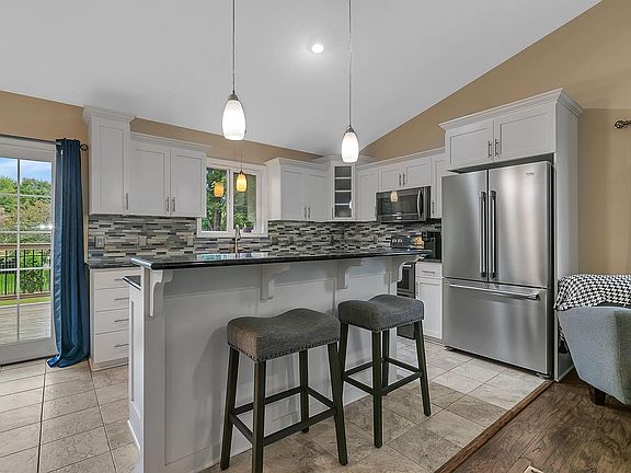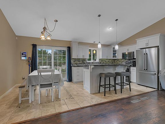 Gorgeous South St. Cloud home with fenced in back yard on a large corner lot! Step into a huge foyer with closet and tile floors, and head up to the open concept floor plan with spacious living dining and kitchen, all with vaulted ceilings! Large center island with granite counters and stainless appliances. Big dining area that steps out on to the deck overlooking the expansive back yard! Huge livingroom flooded with natural light! 2 spacious upper level bedrooms including the HUGE primary with walk thru bath, separate vanity area. Walk in closets in every bedroom! The lower level features the family room with gas fireplace and bar! Perfect for hosting the big game! 2 more large bedrooms in the lower level! You will love the private back yard, surrounded by greenery, and shaded with mature trees! Large 3 stall insulated garage as well! This one will not last