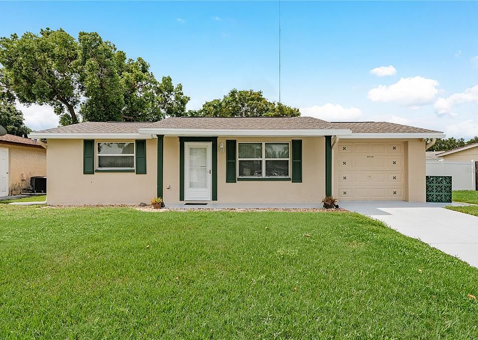 One or more photo(s) has been virtually staged. Awesome opportunity for an AFFORDABLE Home with lots of space! This home features a NEW ROOF (2024) freshly painted Exterior, surge protection on the whole house, updated Attic insulation, and updated Windows plus MORE!! Take a look at this spacious home with 2 Bedrooms, a Family Room, additional Sun Porch with A/C and a BONUS In-Law/ Office space in the garage. The Kitchen has solid surface counters and good cabinet space! No carpet here - all tile or laminate flooring! The Laundry area is oversized and has a sink. Outside, the back yard has a Pergola and a Firepit as well as a storage shed. If you are looking for extra space this is the home you should see! Nicely maintained on a semi-corner lot with a full Privacy Fence in back. No HOA here!
