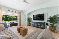 Motorized screened lanaiBacks to a pondOutdoor kitchenQuartz countertopsSparkling poolSpa-like bathroomLush tropical landscaping