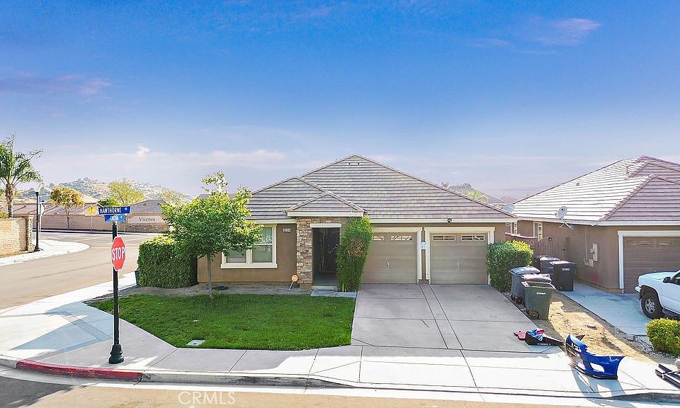 BEAUTIFUL single-story home has a great curb appeal with a very nice exterior, front lawn, landscaping, and 2 car garage. The open interior offers a large living room, dining area, open kitchen with a center island, indoor laundry room, three large bedrooms, and two full bathrooms. The spacious master suite has a large walk-in closet and a private bathroom with dual sinks. This home is within walking distance to parks, schools and just minutes from freeways, walking trails, and Lake Perris. This is a MUST SEE!!!