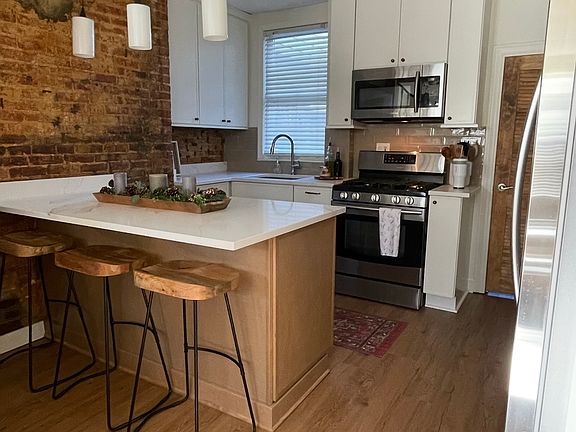 Welcome to this beautifully updated row home featuring a private parking pad and a fully fenced-in patio, ideal for relaxing or entertaining outdoors. Inside, you'll find a renovated kitchen with modern finishes and ample cabinet space perfect for cooking and hosting.