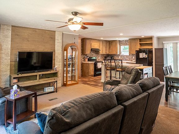 Looking for space, privacy, and affordability? This 2022 manufactured home in Clover checks all the boxes. Set on nearly 6 acres, this move-in ready home offers the peace and quiet of country living without sacrificing the comfort of convenience. The home features a spacious open floor plan with a large kitchen island, farmhouse sink, and plenty of room for everyone. A separate den provides flexible space for a home office, playroom, or second living area. The primary suite offers a walk-in shower, deep soaking tub, and a layout designed for relaxation. Built just three years ago, all major systems are still under five years old—including a never-used wood-burning fireplace. A wheelchair ramp at the back of the home adds accessibility, and stability. This is a smart choice for buyers seeking value in a private, move-in-ready home. Please allow 24 hours for showings. Don't wait—affordable properties like this one don't last long!