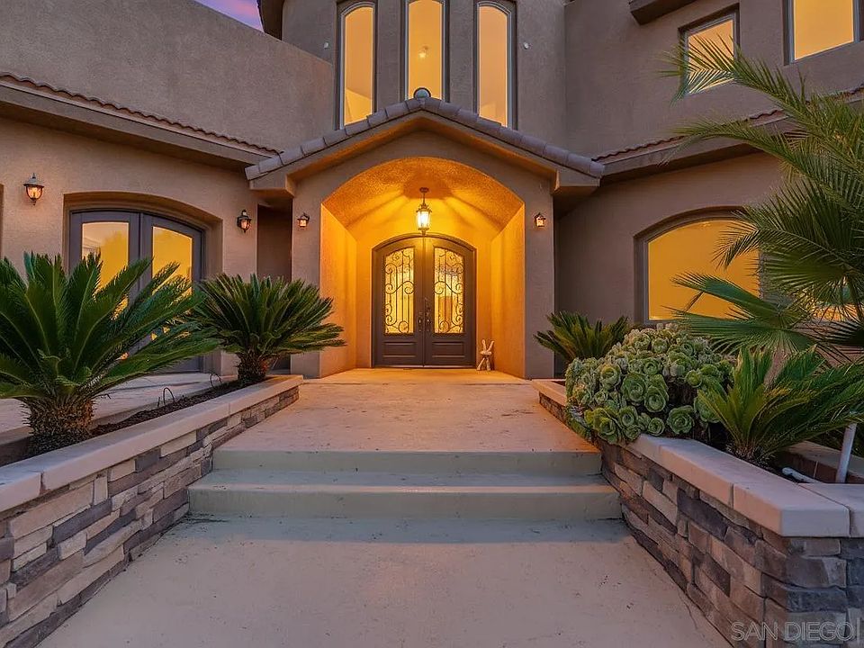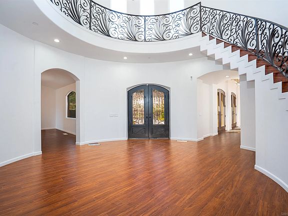 Perched on over 6 acres of rolling land, this Mediterranean-inspired estate offers sweeping valley views and a rare opportunity for elevated living. The home is beautifully framed and features dramatic vaulted ceilings, a grand rotunda entry, and finishes that reflect refined craftsmanship. Multiple fireplaces add warmth and ambiance throughout while expansive glass doors seamlessly connect indoor spaces to the natural beauty outside. The grounds are lush and private, with mature landscaping and an avocado grove that adds both tranquility and income potential. With generous driveways and parking, this residence strikes a perfect balance between peaceful seclusion and easy access to amenities. Positioned in a desirable community and built with attention to detail, this property is made for those seeking elegance and room to breathe.