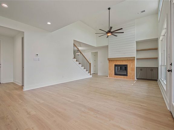 Welcome home to this beautifully built 3 bedroom, 2.5 bath; home with over 2,057 sq ft for remarkable and spacious living featuring 9ft ceilings and 8 ft doors throughout the 1st floor. The living room highlights an open 13ft, 2-story ceiling with a flip of a switch gas started fireplace, built-in book shelves, and shiplap accent wall. The primary suite stands out with a spa-like bathroom and closet fit for a queen. A half bath located conveniently downstairs makes everyone feels at home. The high end kitchen has a large working island, tons of cabinets, a gas range, and large walk in pantry. The second floor offers 2 additional bedrooms and a large double sink bathroom with a tub/shower combo. There is an additional 262 sq ft of “ready to build out” bonus space that could be used as is for storage or could be finished out for an office, playroom, or extra bedroom with bathroom. The oversized garage will fit your automobiles with extra space for the fridge and deep freezer. Enjoy the large backyard on the patio and relax on your newly sodded yard. Details matter and it shows in this home. Come see for yourself!