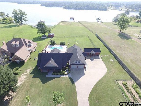 Resort living on Lake Fork. Fish one of the best coves from your own boat dock with lift, pier, & cleaning station, swim in the in ground pool, practice some golf shots from the backyard tee box & put family & friends up in the detached guest quarters. half bath across from the pool area, garden spot & fruit trees, long concrete drive with ample parking. Inside there's a split bedroom plan.