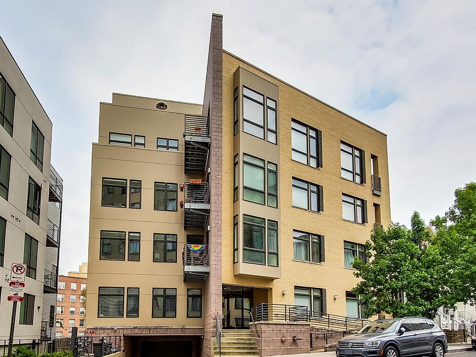 Presenting this beautiful 1064 square/foot, two-bedroom, two-bathroom condo located in the heart of Columbia Heights. This stunning condo boasts elegant contemporary features and high-end finishes throughout, providing a luxurious home experience. First floor entry into large vestibule. Practically new building and this unit is located on the quiet back side of the building. Oversized windows w/ 3 exposures, great closets, perfect hardwoods, sleek baths and high ceilings. Plus unique, secured, PRIVATE LARGE (225+SF) PATIO overlooking the building's common-area walled garden. Clean DESIGNATED GARAGE PARKING included.