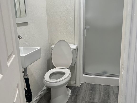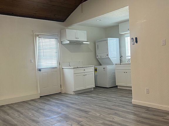 This is an ADU/ Studio unit. Comes with its own bathroom, kitchennette, stackable laundry. Laminate flooring. Studio with closet. Mini split AC and heating system. Shared utilities with back house. Fully remodeled.