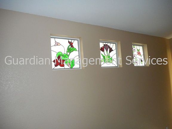 This is the classic definition of a doll house. Light, bright and natural, the property is done in warm desert tones throughout. The floor plan features both living and family rooms and the master suite has customs stained glass windows. Excellent schools and easy access to major transportation arteries. There is nothing NOT to like about this property. Washer, dryer and refrigerator provided but not warranted. Landscape service provided every two months.