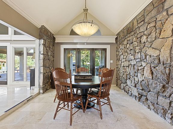 Stationary two-slip boat dockTwo garagesLake viewsNo-carpet designStunning covered deckTons of natural light