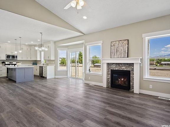 Just finished-New Construction! Gorgeous Rambler ready for new owners. Finished with 4 bedrooms, 2.5 baths and plenty of room to grow in the basement (Blueprints call for 4 more bedrooms, large bath, oversized rec room downstairs and lots of storage). Beautiful white cabinetry in the kitchen with white Carrera style quartz. Gas range, Stainless steel appliances, oversized single bowl sink, bubble glass globe pendants and light fixtures. Vaulted ceilings and lots of windows bring in so much natural light. Gather around the stunning fireplace in the great room. Primary bedroom has gorgeous bath with stand alone tub and separate designer shower with His and Hers closets and separate commode room. Front yard is in so you just have to landscape back yard. Lovely lot .41 acres with backyard views to the East for best summertime shade. Westerly exposure on driveway will help burn off snow in the wintertime. Close to freeways, shopping, recreation. 9 miles to downtown SLC. 15 min commute.