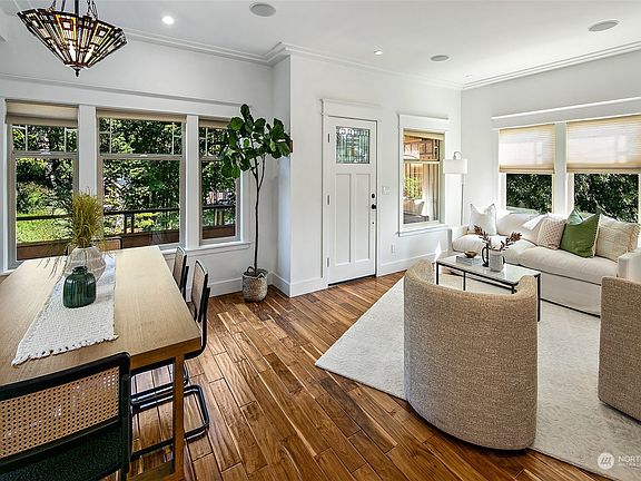 Unique offerings at a prime commuters paradise. 2010 three level home with wonderful light, space & parking for all; enter to the main level living/dining & chefs kitchen that flows onto a deck overlooking private backyard & garden shed. Seasonal views of the Bay, City + Mountain. Back inside note the walk in pantry, full bath & 1st bed. Upstairs find 3 more ample sized beds & full bath. Primary has large walk in w/built ins. Lower level w/separate entrance, additional bed, full bath and a great rec room as well as laundry. A/C, Earthquake retrofitted, Attached one car garage + multiple off street parking plus fenced side patio (Boat/RV or more space to roam). Pop over to Luna cafe, Alki or easy access downtown with C line or water taxi!