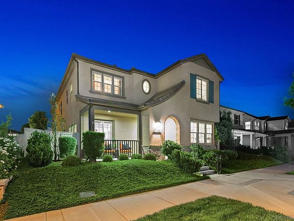 Your new home in the sought after community of Harmony Grove Village awaits you! This lovely home features many designer touches, OWNED solar, an ample 3027 sq. ft. with 4 bedrooms, 4 1/2 baths, bonus room (could easily be converted to a 5th bedroom) a separate office with French doors for privacy and a 3 car garage. The spacious great room features a cozy electric fireplace, dry bar with beverage fridge and spacious kitchen with a huge island! The kitchen flows seamlessly into the CA Room and patio with several areas for entertaining guests or just staying home and relaxing. This floorplan is perfect for hosting both large gatherings or intimate dinner parties. Harmony Grove Village has it all! Residents enjoy the resort like pool complex, miles of walking/biking/horse trails, 4th of July Park & numerous pocket parks.