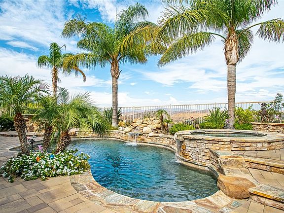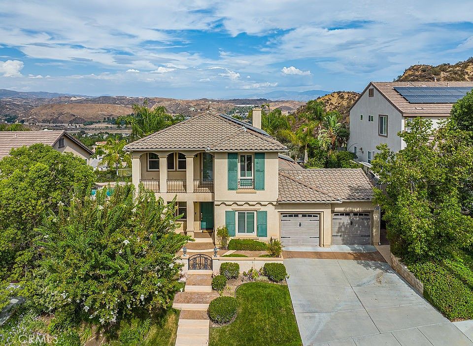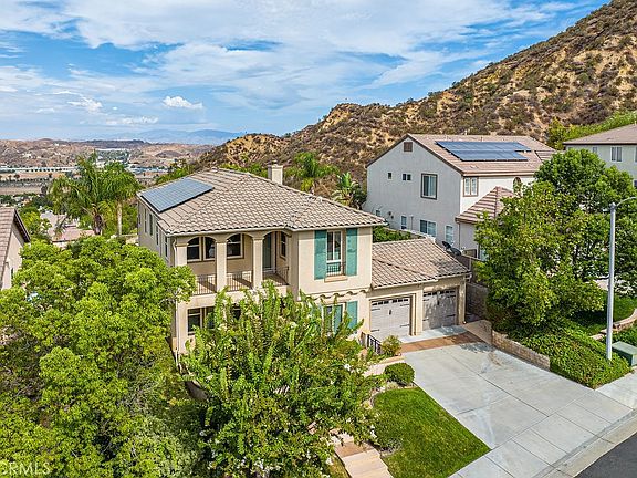 Truly the best of Castaic's popular Hillcrest Park, this pool and view home offers everything for the discriminating buyer. With no rear neighbors and views for miles we have one of the best locations on the cul-de-sac and the upgrades invested both inside and out are beyond what most homes offer. Amazing salt water pool and spa with exceptional stone paver hardscape, granite cook station with DCS BBQ and firepit. Nice deck off the master too. Inside is a mixture of high end fixtures and finishes - wood and marble floors, crown molding, newer roof, windows & doors and the Lennox heat & air is also just a few years old. OWNED solar as well to save you money. This open floorplan has an oversized kitchen/family room with granite island, backsplash and high end Viking appliances. The 5th bedroom down is an office with built-ins, upstairs is 4 bedrooms plus a large loft. Lots of room in all the right places with the master bedroom offering a great walk-in closet and a spacious bath. Finally the 3-car tandem garage has its own air conditioning, pro cabinets throughout and epoxy floors. Every part of this exceptional home has been updated and is model sharp. With no HOA or Mello Roos taxes, walking distance to schools and freeway close for commuters this pool home is a winner!