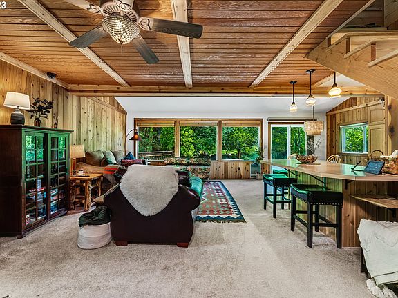 Welcome to this secluded classic Mt.Hood waterfront retreat on the banks of Still Creek. Beaming with character and rustic charm from floor to ceiling, this cabin presents a spacious open floor plan, cozy living room with all the knotty pine, vaulted ceilings & a toasty wood stove perfect for those chilly nights. The living/dining room combo offers huge windows bringing the outside in, with plenty of natural light to go around and great views of the surrounding foothills. Find your inner peace as you walk out to the back deck and be taken back by the enchanting forested setting and tranquil sounds of the creek. Truly a private and magical oasis! Multiple hiking trails right out your front door, or simply take a nice drive up RD 12 all the way to Trillium Lake! Forest Service leased land, so no STRs and no full time occupancy, second home only and cash only sale.