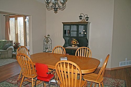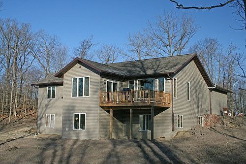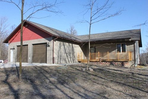 Need a large home with space for everything and acreage, too Here is a newer 6 bedroom, 3 bath home on 12.6 acres about 5 miles NE of DL. Open floor plan, knotty alder cabinets, pantry, main floor laundry, sun room to deck. Master bedroom with bath, whirlpool, tub, & shower. Large lower level family room. Attached garage is heated & insulated with a separate furnace.