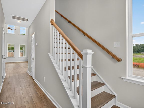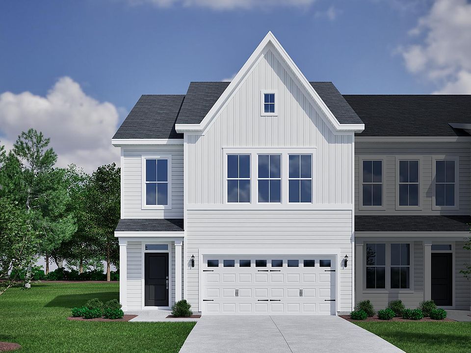 This spacious townhome boasts a two-car garage, first-floor primary suite and open concept living. Upon entering, you'll find a convenient powder room that seamlessly flows into the great room, kitchen and eat-in that feature soaring two-story ceilings. additionally, this home offers a covered porch, perfect for outdoor relaxation. Downstairs the primary suite includes a walk-in closet, dual vanities, and a walk-in shower. A laundry room pass through off the primary closet adds extra convenience. Upstairs, you'll discover two secondary bedrooms, a full bathroom, and a versatile loft space. Located just minutes to shopping and dining as well as Historic Downtown Wilmington, Welcome to Grand Park. This Master Planned community will offer amenities such as a swimming pool, covered outdoor pavilion and walking paths.