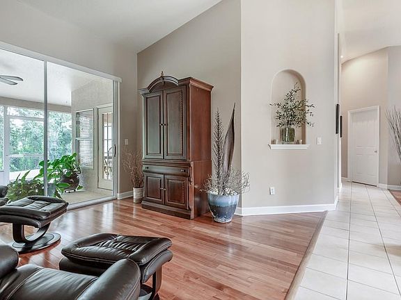 Enjoy the privacy and serenity of relaxing on the huge (30' x 13') screened patio on your own wooded conservation lot, which measures 276 feet deep and has no rear neighbors. This stylish four-bedroom home feels like you are a thousand miles from nowhere YET is within five minutes of A rated schools, top of the line dining and shopping! The home boasts an open floorplan and split bedrooms with the second bath doubling as a pool bath AND there is plenty of room for a pool! This home has neutral tile and gorgeous engineered hardwood floors throughout, a cook's kitchen is at the heart of the home and opens to the family room, and a private master's retreat measuring 33' x 17' (mol) has a large shower and whirlpool tub fit for royalty. Architectural details include a Palladian window bathing the formal dining room in natural light, eye-brow windows in the master bedroom provide wall space and privacy and the back of the house is glass providing unequaled views of the large, lush lawn. This house has been loved: The roof was replaced in 2008; the A/C was replaced and upgraded in 2012; the whole house has been re-plumbed; the water heater is newer and warranted for the new owner; the interior was repainted within the last two years. Colonial Oaks is a picturesque subdivision of thirty-nine homes hidden away in the Bloomingdale area and consists of one street with a single ingress/egress.