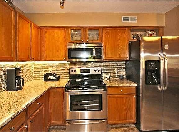 When only the best will do! Recently upgraded, this gorgeous condo, with a wooded view, offers granite ctops and CT tiled floors in the kitchen and baths, stone and glass backsplash in the kitchen, SS appls, raised vanities in baths with stone & glass tile accents. The FP features a new stone and slate surround. New carpet, window coverings and fresh paint thruout. Worried about lack of storage in a condo? No problem here! It has a full, clean and dry basement! Pristine, like new and move-in ready!