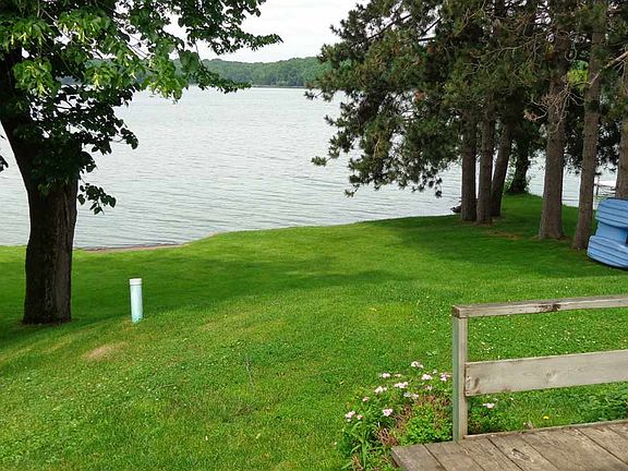 Beautiful 180 ft of waterfront property on 1.1 Acres with amazing living space views. Dock and paddle boat included in sale. Large yard, extra detached garage, fire pit, tiered maintenance free deck, porch, patio and fantastic green space. Inside you have a dry walled and insulated 2 car garage, 4 bedrooms, open floor plan with main level laundry, walkout lower level, large family room and storage space. One owner home. Call today for a private showing. Great waterfront at an affordable price!