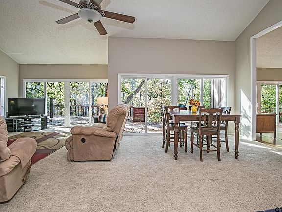 Country Place, a beautiful and highly sought-after subdivision leads you to this quiet secluded home sitting on almost 2 acres surrounded by large shade trees. Enter the great room that boasts a beautiful twelve-foot stone fireplace. The twelve-foot vaulted ceiling and large windows across the back wall of the family room and formal dining make this a great place for entertaining or just quietly sitting in front of a warm fire. This home has formal dining, 4 bedrooms, 3.5 baths, and two-car garage with a connecting mud room that would make a perfect hobby room. The utility room includes a half bath convenient for the hobbyist or fishermen. One bedroom located downstairs is adjacent to a full bath with shower/tub. Upstairs is a large master suite and shower/tub bath. Two upstairs guest bedrooms share a full hall bath with shower/tub. From the family room, a large deck overlooks a picturesque back yard with shade trees down to a private fishpond. Deer can frequently be spotted enjoying the wooded back yard and pond. So, take a walk down to the fishpond that borders the south property line. Updates include fresh light interior paint throughout, new interior doors, updated baths and new French doors exiting onto the patio. Extensive repairs are scheduled to begin December 1st. on foundation repair, exterior painting, deck and roof replacement. Come see this great property and be ready to stroll the quiet streets of Country Place and fish the three-community ponds.