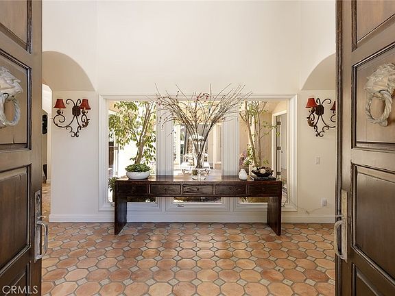 Welcoming expansive double fairway golf course views overlooking the signature 15th hole at the Marbella Country Club in San Juan Capistrano, this custom Santa Barbara style estate exudes elegance. Crowned by towering brick-finished domes set above the foyer and staircase, the luxurious residence is bathed in soft, natural light and designed to complement preferred indoor/outdoor entertaining and living. A generous motorcourt and gated entry patio set the scene, and a central courtyard anchors a first level that hosts formal living and dining rooms, a sitting room, an oversized family room with wet bar, an office and a guest suite. A see-through two-sided fireplace warms the living and sitting rooms, another fireplace graces the family room, the dining room opens to a spacious patio, while Saltillo and Cantera tiles, newer European oak flooring and wide archways are on display. An island with prep sink highlights a gourmet kitchen that is distinguished by a nook with backyard access, a pantry, granite countertops, handsome cabinetry, a hammered-copper farmhouse sink, and Thermador and Sub-Zero appliances including a 48" range, full-height wine cooler and built-in refrigerator. The open and flowing floorplan encompasses three large en suite bedrooms, three-and-one-half baths, secondary primary suite with a view and balcony, and grand primary suite with sweeping golf course views, intimate balcony, freestanding tub, fireplace, and walk-in closet. An additional private versatile room with its own exterior entrance as well as access from the primary suite is ideal as a nursery, studio, or yoga space. Truly rare in Marbella, the estate also offers a tiled rooftop patio with a fireplace, built-in BBQ, and panoramic golf course, hill, and evening-light views. Natural stone and wood is featured in select living areas, and crown molding, designer wall treatments and exquisite lighting fixtures catch the eye. Features include a three-car garage and a one-car garage, fountains, firepit, built-in BBQ, and beverage refrigerator, natural stone patios and walkways, and mature landscaping including towering cypress trees. Marbella’s gated entry with 24-hour attendant leads to a pristine community setting of rolling hills and a country club with six lighted tennis courts, Jr. Olympic swimming pool, restaurant, and cocktail lounges. Miles of beaches, countless shops, and popular restaurants are all close to home.