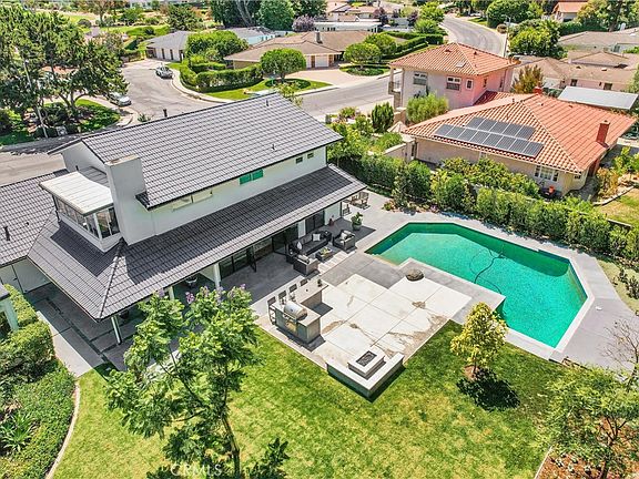 Stunning reimagined contemporary styled home with sleek clean lines, light filled spaces framed by natural materials, boasting a spectacular entertainer’s backyard haven and a superb location just across the street from El Niguel golf greens. The highly manicured front yard and striking exterior features create a dramatic first impression. Pass through the gated front entrance where you are greeted with lush vibrant foliage framing a private courtyard leading to the striking glass door entrance. Step through to the astonishing Great Room, a spectacular open concept space with living room seating area open to the airy dining space and stunning kitchen, with warm Mediterranean Oak plank floors and a wall of metal framed windows and French doors providing soothing views of the backyard, a perfect indoor-outdoor living space for entertaining. The luxurious chef’s kitchen is a masterpiece boasting a 14 ft island with Brazilian Marble waterfall countertop, sleek European style cabinetry, and professional grade appliances including a Forno Italian 8 burner range and commercial fridge/freezer. The main level includes a highly prized bonus room perfect for a home office. Travel up the striking stairwell framed by a custom metal wall and glass railings to the bedroom level where you will find the primary bedroom suite, a peaceful retreat with a private sunroom and gorgeous views, perfect for enjoying an evening glass of wine with a loved one. The primary bathroom is a sumptuous space with luxurious marble features, dual vanities, a walk-in closet tucked away, a huge step-in shower and Japanese style soaking tub, your own private home spa! Each guest bedroom includes beautifully remodeled full private baths with the same luxurious marble features and fine fixtures. The backyard is a private tranquil oasis framed by lush landscaping and mature trees, with a spacious patio with built-in bar, firepit, and BBQ overlooking a large inviting pool and large grassy lawn. You will adore the detached fully finished structure hidden away in the backyard, customizable to fit your imaginings, a perfect nook for a small home office, craft room, playhouse, yoga, or meditation space! Superbly located in a highly desirable school district and within walking distance of the library, dining, shopping, and close to numerous hiking and biking trails, Laguna Niguel Racquet Club and El Niguel Country Club and golf course, minutes from Salt Creek Beach, Dana Point Harbor and Laguna Beach.