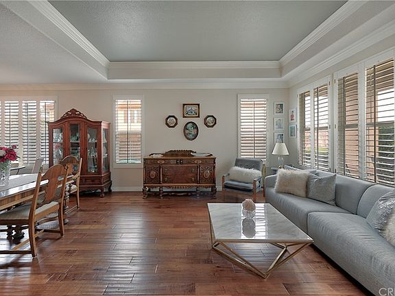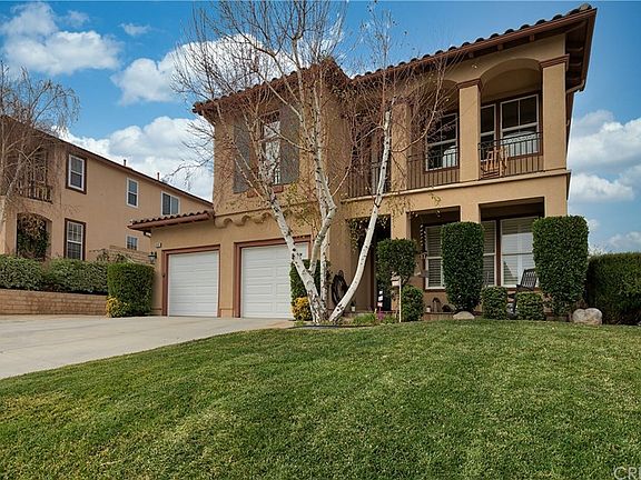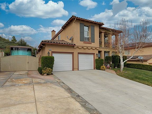 Gorgeous Cristal POOL HOME w/ View and RV ACCESS, NO HOA, NO MELLO ROOS! This home, with lovely curb appeal, features a front porch seating area. It also features fine detail throughout with chair railings, crown molding, custom baseboards & gorgeous porcelain tile, and engineered wood flooring which flows from the entry into the kitchen & family room. The relaxing formal living room with a tray ceiling opens into the spacious dining and bar area. The elegant downstairs bath has been remodeled with custom vanity, lighting, tile shower. There is an extended laundry room with cabinets. Spacious kitchen w/ granite counters & large island, tile backsplash, stainless steel appliances, breakfast bar area, lots of cabinets. Open concept family room offers a warm fireplace with shiplap details on the walls & French door opening to a private entertainer back yard w/relaxing pool & waterfall. Covered patio with 3 ceiling fans, speakers, lighting, and huge built-in farm table firepit that seats up to 14 people. The pool has beach entry and custom wrought iron, lockable fencing, and an additional firepit. Built-in 22" Lynx BBQ with rotisserie. The upstairs offers a comfortable master suite with great views. The master bath boasts a travertine & walk-in shower, his & hers sink/vanity area, separate tub & custom walk-in closet with organizers the two secondary berms offer lots of space & flow out to a large open bonus area & a veranda to the front views. New interior and exterior paint