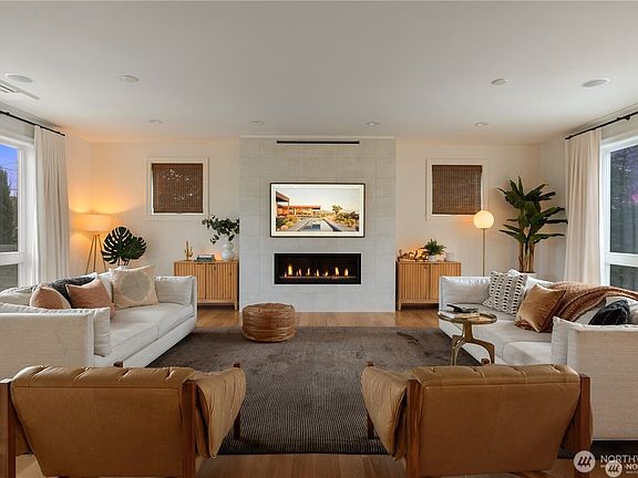 Experience unparalleled luxury in this Magnolia masterpiece, featuring 5 spacious bedrooms and 7 exquisite bathrooms. The home showcases stunning hardwood floors throughout, complemented by elegant tile finishes. The main level boasts heated floors and a gourmet kitchen equipped with top-of-the-line appliances, flowing seamlessly into a sophisticated dining area perfect for grand entertaining. Expansive sliding doors reveal a meticulously landscaped backyard oasis, complete with a gas fire pit and a serene saltwater hot tub. Indulge in the ultimate comfort with 2 primary suites featuring lavish en-suites and unwind in the top-floor rec room, offering breathtaking views of the city skyline, Mt. Rainier, and the Olympic and Cascade mountains.
