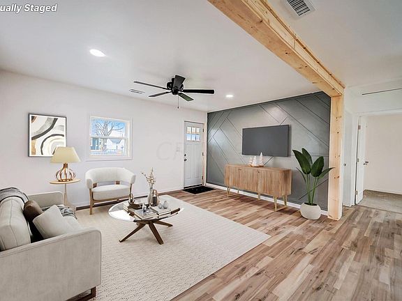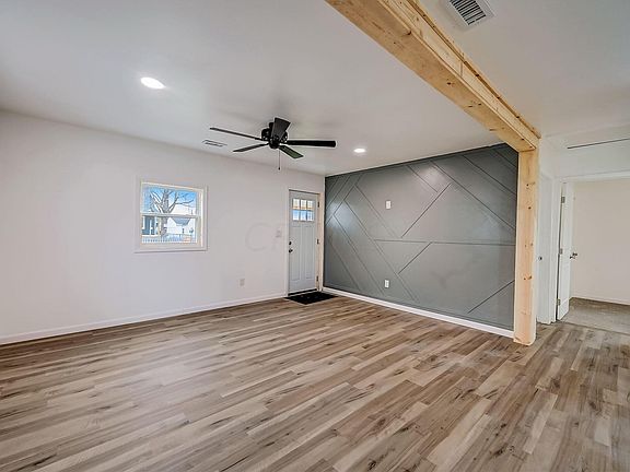 Newly Remodeled! BRAND NEW: Goodman HVAC, Ductwork, Electric, Plumbing, Tankless HWT, Paint, Siding, Gutters, Front and Back Door, Windows. Waterproof Vinyl Floors. Formica countertops in the kitchen. Bathroom features Marble Tile Floors and Subway Tile in the Shower. Oversized 2 car garage, patio, mostly fenced yard w/ an Apple Tree. Refrigerator in the garage conveys. Convenient to the Airport, 670/270, Easton and Downtown.