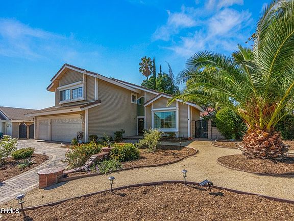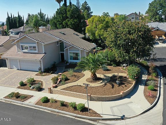 Excellent opportunity to own in one of the most sought after neighborhoods in east Simi Valley. Minutes from the freeway and the San Fernando Valley. Set below the hills of Rocky Peak with a park, hiking, bike trails and much more. Kitchen has upgraded Corian countertops and an Induction cooktop. Upgraded dual pane windows. Vaulted ceilings in both the lower Living room and the Primary suite. Three car attached direct access garage. Indoor laundry room. Washer, dryer and fridge are included. Newley Built In custom shelving and cabinets in the vaulted ceiling Living Room. Whole house fan for low cost cooling. Low maintenance yards. Hall bath upstairs and the ½ bath downstairs have been remodeled. Hardwood flooring throughout, except bathrooms, which are tile and vinyl. Pull down solid window shades on the exterior for privacy and safety. Possible RV access. Two lattice covered patios. Nine Thousand Square foot lot has room on all sides of the house.