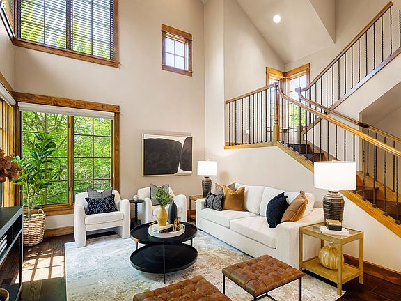 Experience luxury urban living in the Crescent Village area! This stunning home boasts a spacious open-concept layout with soaring ceilings and large windows that flood the space with natural light. The gourmet kitchen flows seamlessly to a private, partially covered outdoor terrace—complete with a built-in speaker system and gas BBQ hookup with access to an additional lower-level patio – perfect for entertaining year-round. Premium features throughout, including granite countertops, stainless steel appliances, and top-tier finish work. The elegant primary suite offers vaulted ceilings, a Juliet balcony with views to terrace, dual walk-in closets, and a spa-inspired bathroom with a soaking tub for ultimate relaxation. 2-car attached garage with 220v outlet ready for EV charger (charger not included). A prime location walking distance to some of Eugene's most popular restaurants and steps away from Umso park and pickleball courts and only a 15 minute drive to University of Oregon. This home combines comfort, style, and convenience in one exceptional package. With a new roof (2024), new carpet in lower bedrooms (2025), and newer appliances, this home is completely move-in ready!