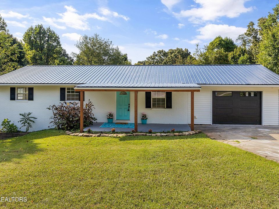Beautifully remodeled basement ranch in Maryville's Scott Hills neighborhood, this 3-bedroom, 3-bath residence blends modern comfort, outdoor living, and a durable metal roof—standing out among homes for sale in Maryville TN. The kitchen wall was opened to create an airy, open-concept flow connecting the living and dining areas. Updates include new flooring, lighting, fixtures, and stylish finishes throughout.