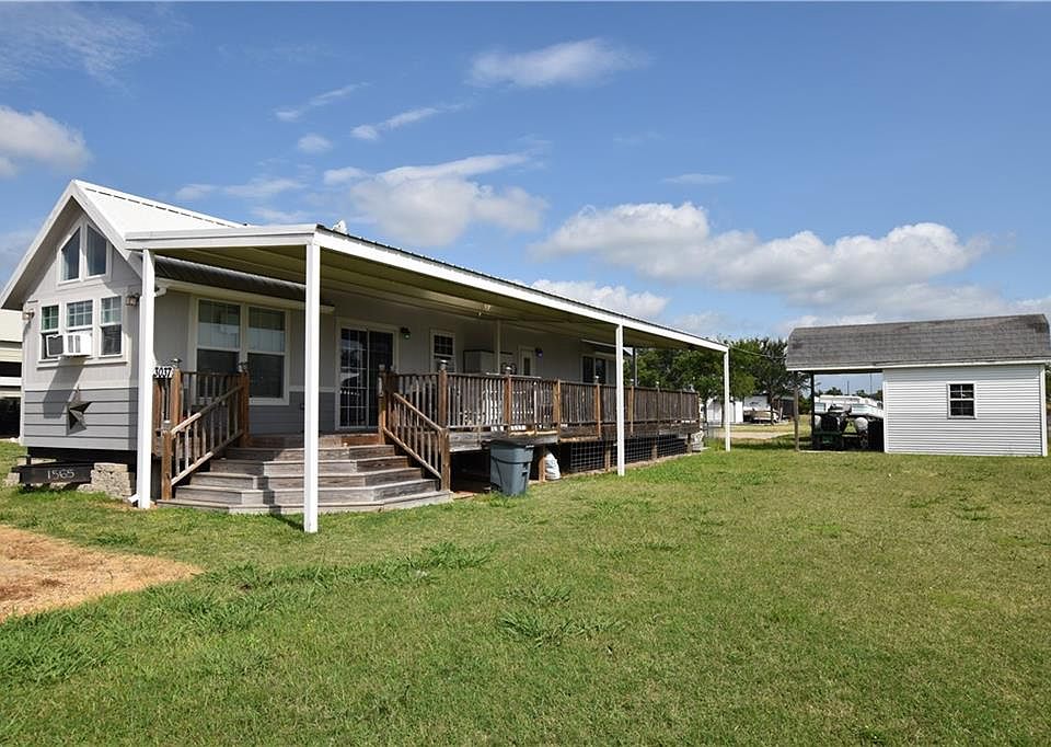 OWNER FINANCING CONSIDERED Popular TINY HOME. Perfect get away for fun at the lake or full time living. Park Model RV with extensions and 55 foot covered deck. Large utility room with full size hook ups , MBR , kitchen and living down, double loft up for QS beds; Minimum costs to live in lake community; enjoy resort facilities, pool, boat launch, and clubhouse; extra storage and energy efficient windows, 3 ceiling fans; 10 x 12 storage building on double lot;