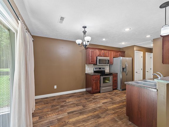 No steps, "Zero Entry Levels", and all one level living. Nice quiet location with a country like feeling to enjoy. Plenty of natural nature yard space to privately host a variety of outdoor activities or to just sit and take it all in. Fenced back yard providing additional safety for children and pets. Large storage shed to home things considered for the outdoors. Your own private storm shelter. The inside displays an inviting configuration with split bedrooms and large rooms with ample space to move around and enjoy. Additional storage space is located in the garage attic with pull down ladder access. The home also comes with kitchen appliances as well as a clothes washer and dryer. The oversized 2 car garage also comes in handy for additional space.