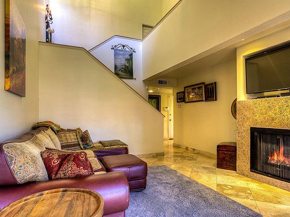 Beautiful & Charming 2 Bedroom, 2 1/2 Bath Home on cul-de-sac! End Unit on Largest lot with huge yard & grassy area, Private, Lush Landscaping, Patio with pavers & mosaic colored tile Perfect for entertaining. Highly upgraded w/ Travertine and Wood Floors throughout, custom light fixtures. Gourmet Kitchen with Stainless Steel appliances, tile counters, dark cabinets, Garden Window. Dining Room, Spacious Living Room w/ cathedral ceiling, Gorgeous Tiled Fireplace & French doors to yard. Downstairs powder room. Master suite with vaulted ceiling, Custom wood doors to master bath with travertine floors, Dual vanities w/ granite counters, big walk-in closet. Second Ensuite Bedroom Upstairs. 2 car attached garage. Community Pool & tennis court. Great location, easy freeway access. Must See!